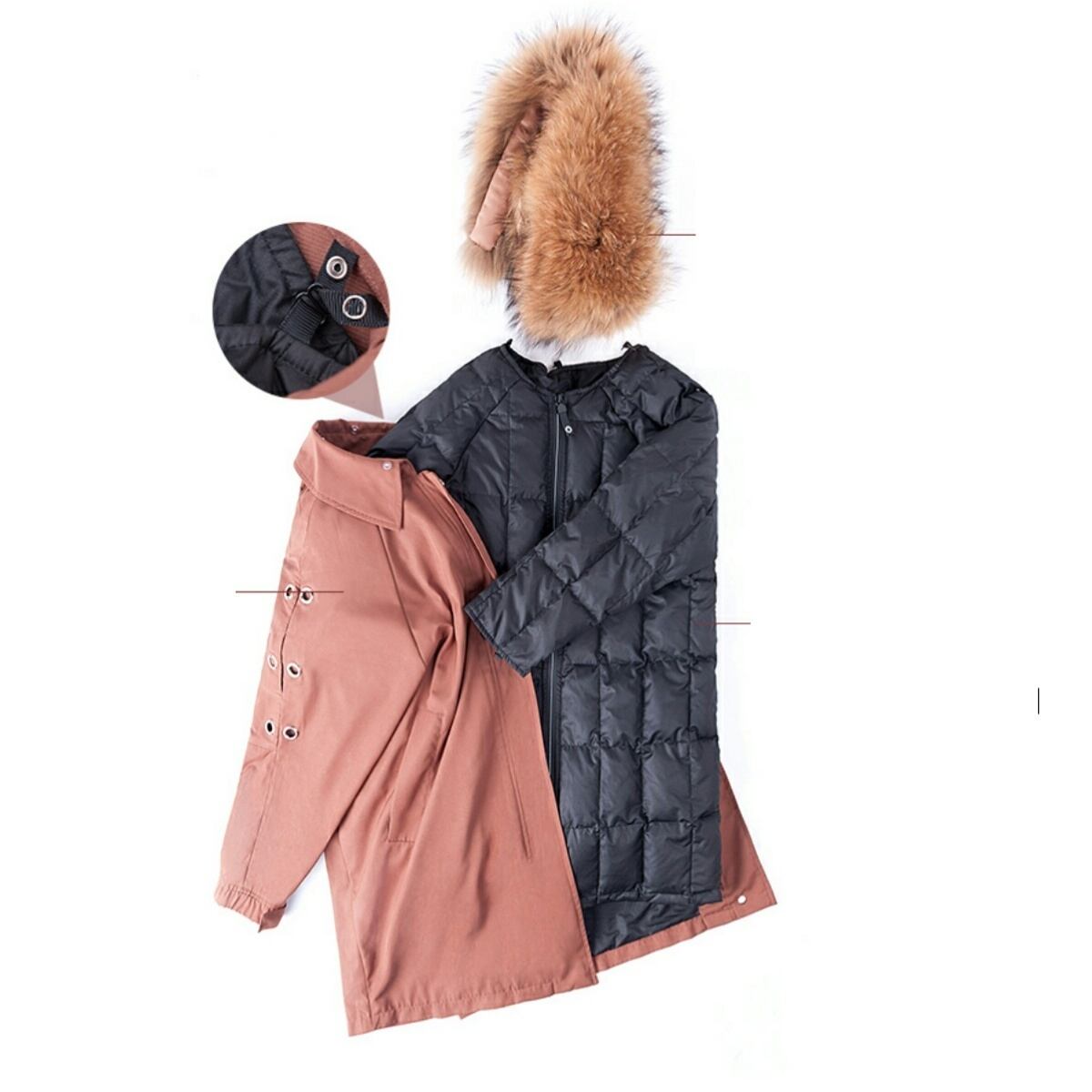 3WAY/ファー裏地取外し可/春秋冬使用ラクーンファーダウンコート