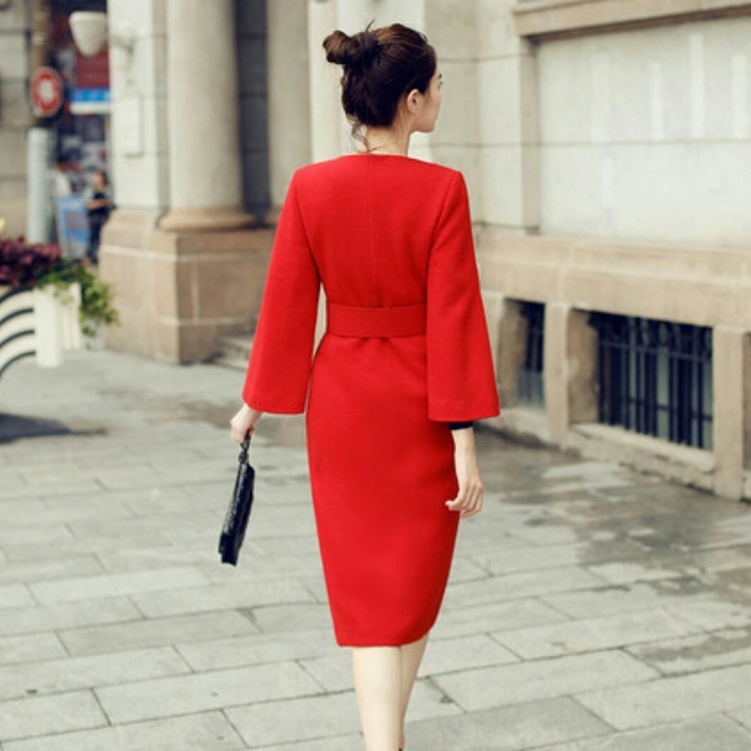 ベルト付/カシュクールワンピースの様なノーカラーコート赤など