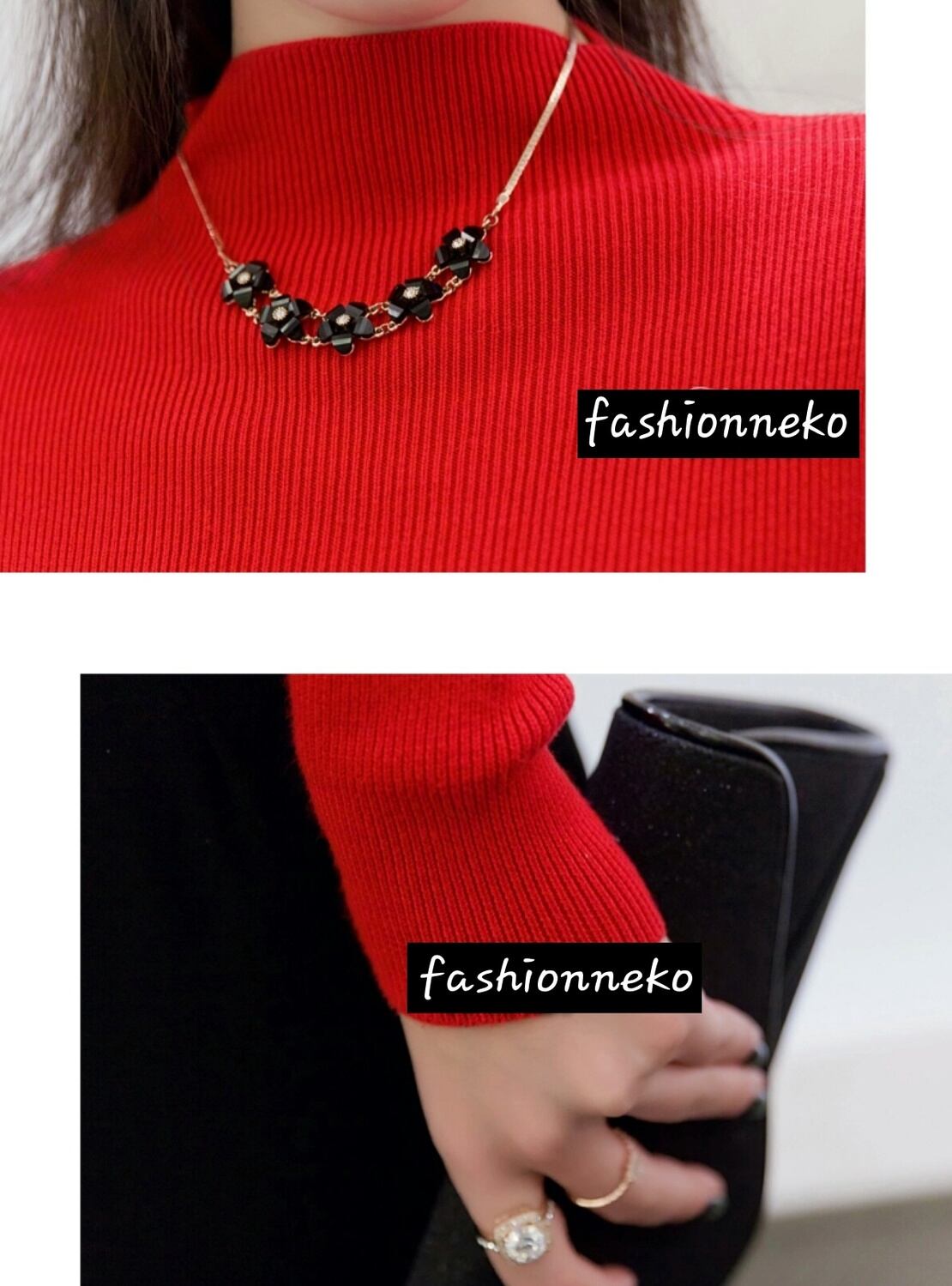 センス抜群!最新作2色/クロップド丈ボトルネックニットトップス