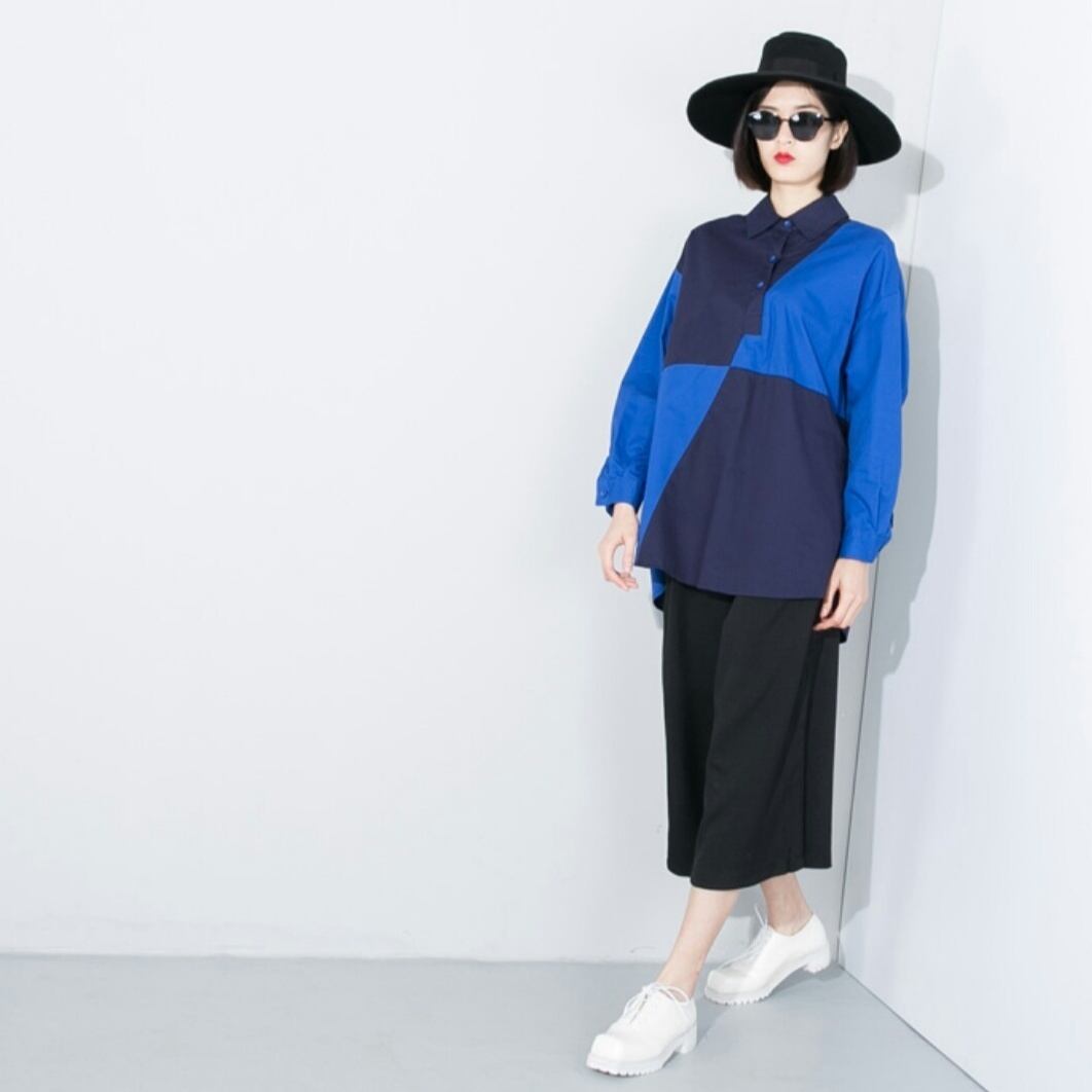 センス抜群!最新作2色/バイカラージオメトリックシャツ