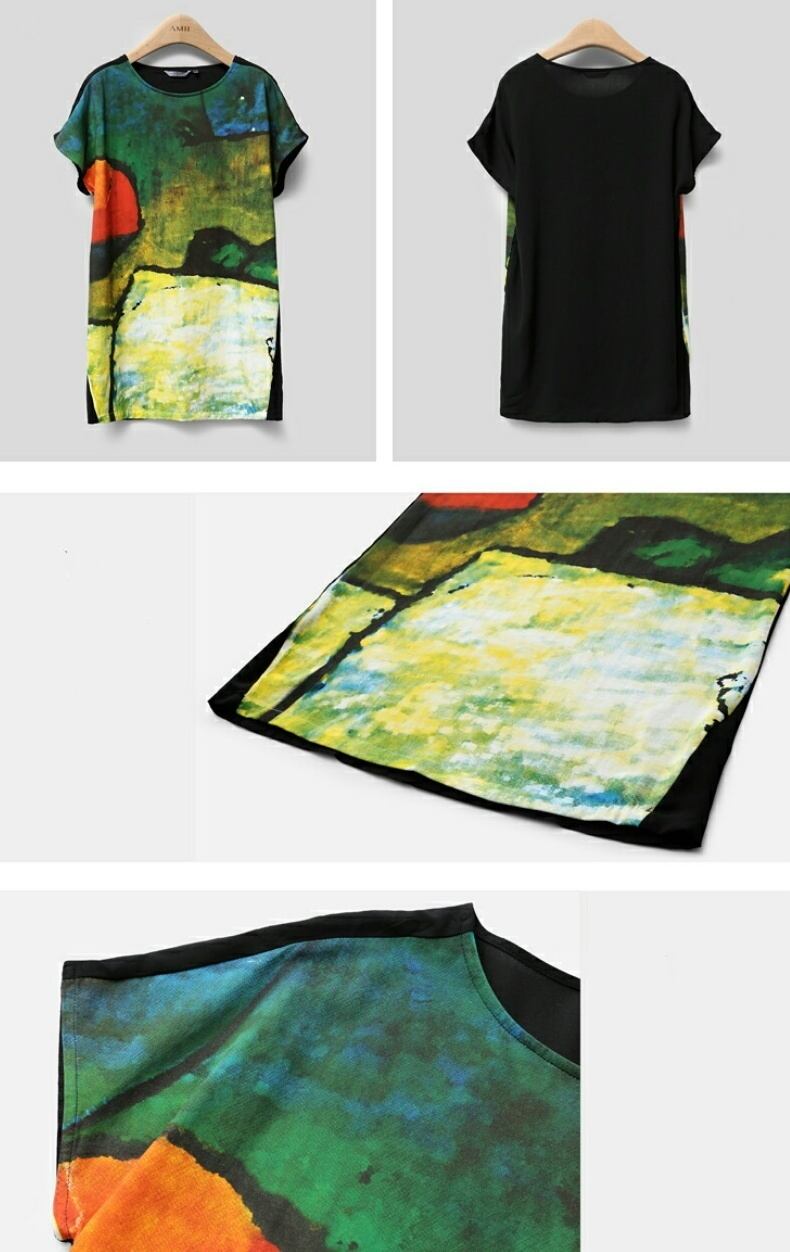 センス抜群!最新作フロント絵画風ナチュラルトップス