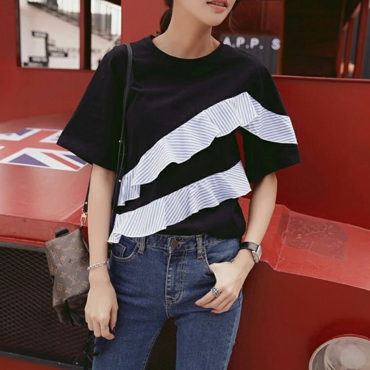 センス抜群!最新作2色/斜めフリルバイカラートップス