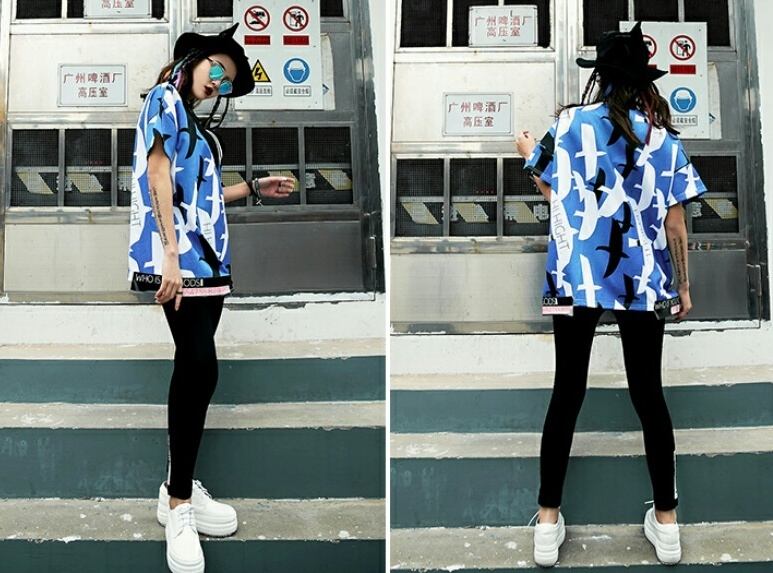センス抜群!最新作2色/2タイププリント/VネックTシャツ
