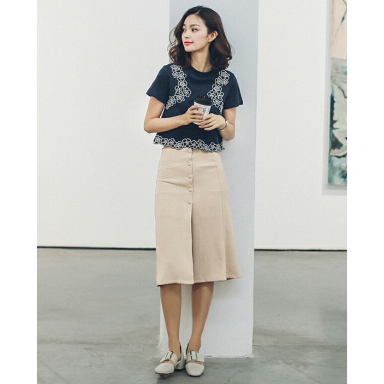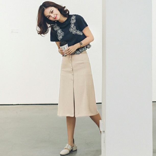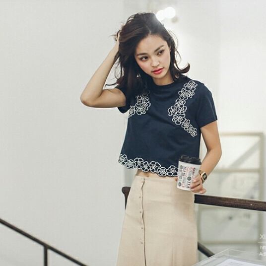 センス抜群!最新作2色/ポイントフラワー刺繍Tシャツ