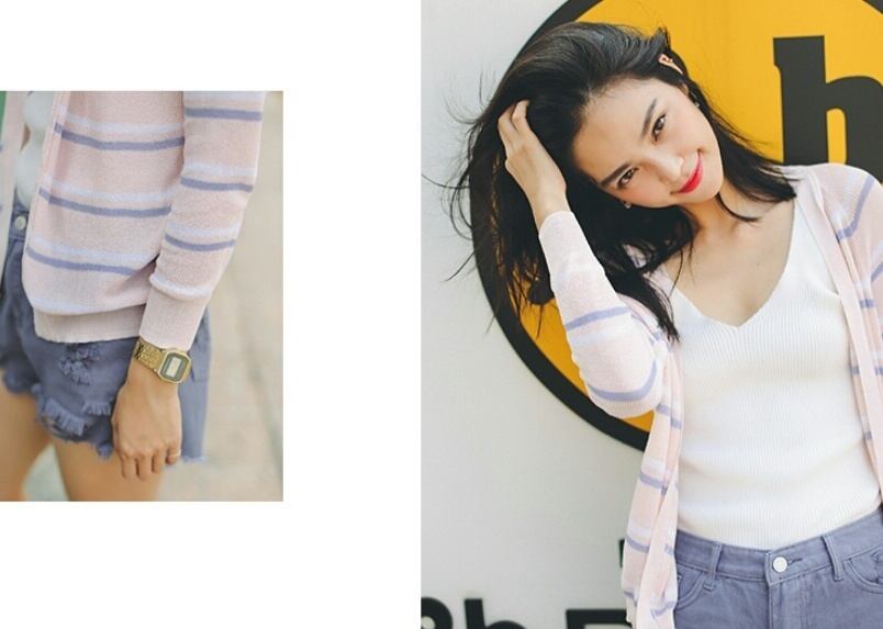 ボーダーニットカーディガン薄手生地で通年のコーデに活躍