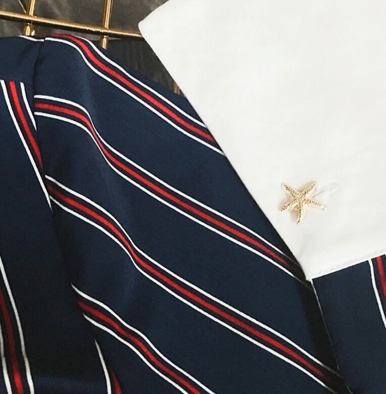 トランペットストライプブラウスがスタイリッシュ ピンクなど
