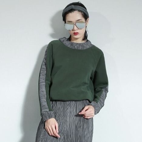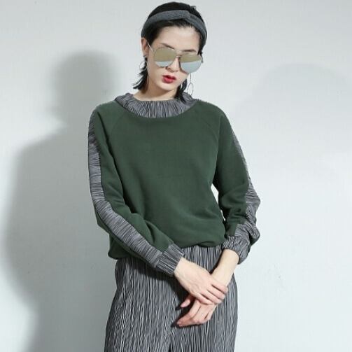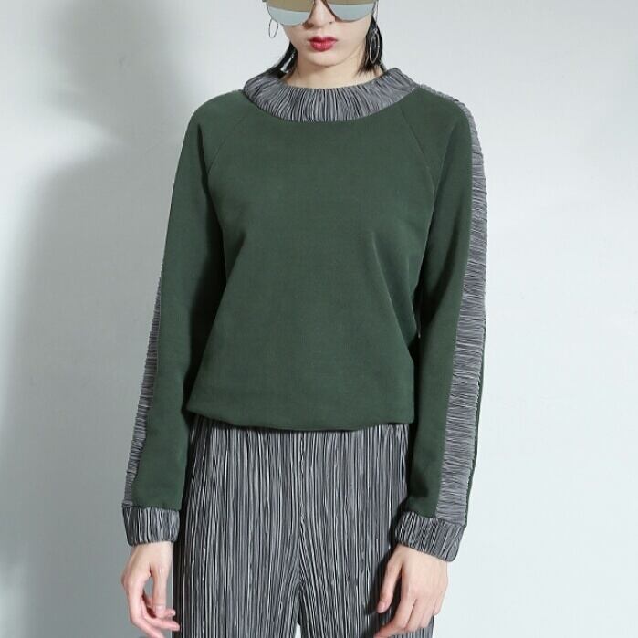 ポイントプリーツとのコントラストがスタイリッシュなトップス