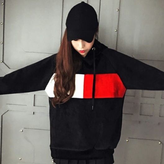 フロントのバイカラーがポイントのカジュアルなパーカー
