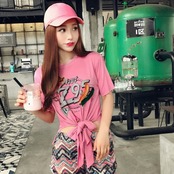 アウトラインの遊心がおしゃれ/フェザー付きピンクのTシャツ