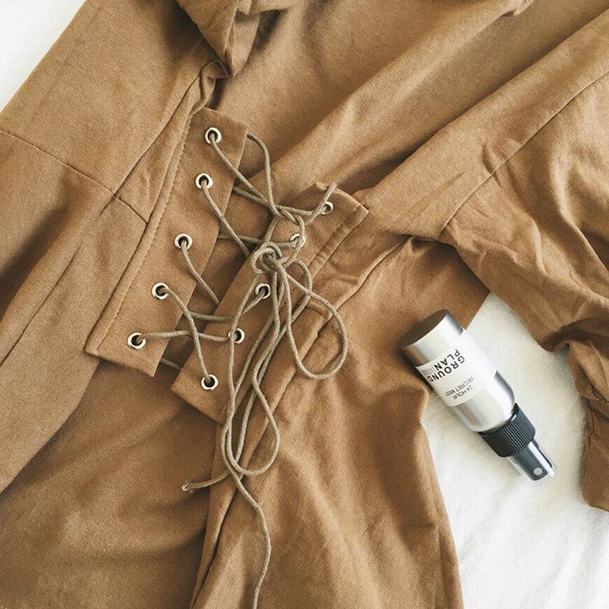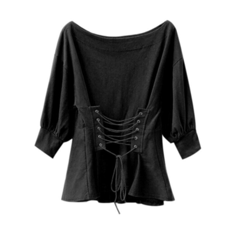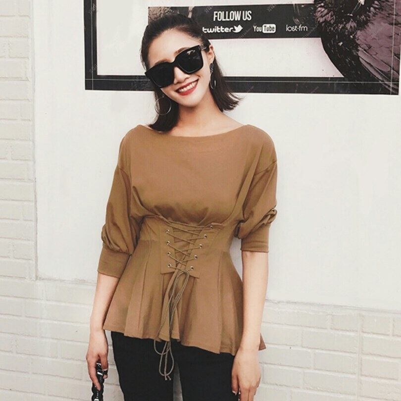 サッシュベルト風のウエストライン/ペプラムトップス黒/茶色