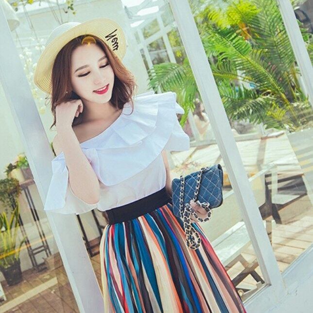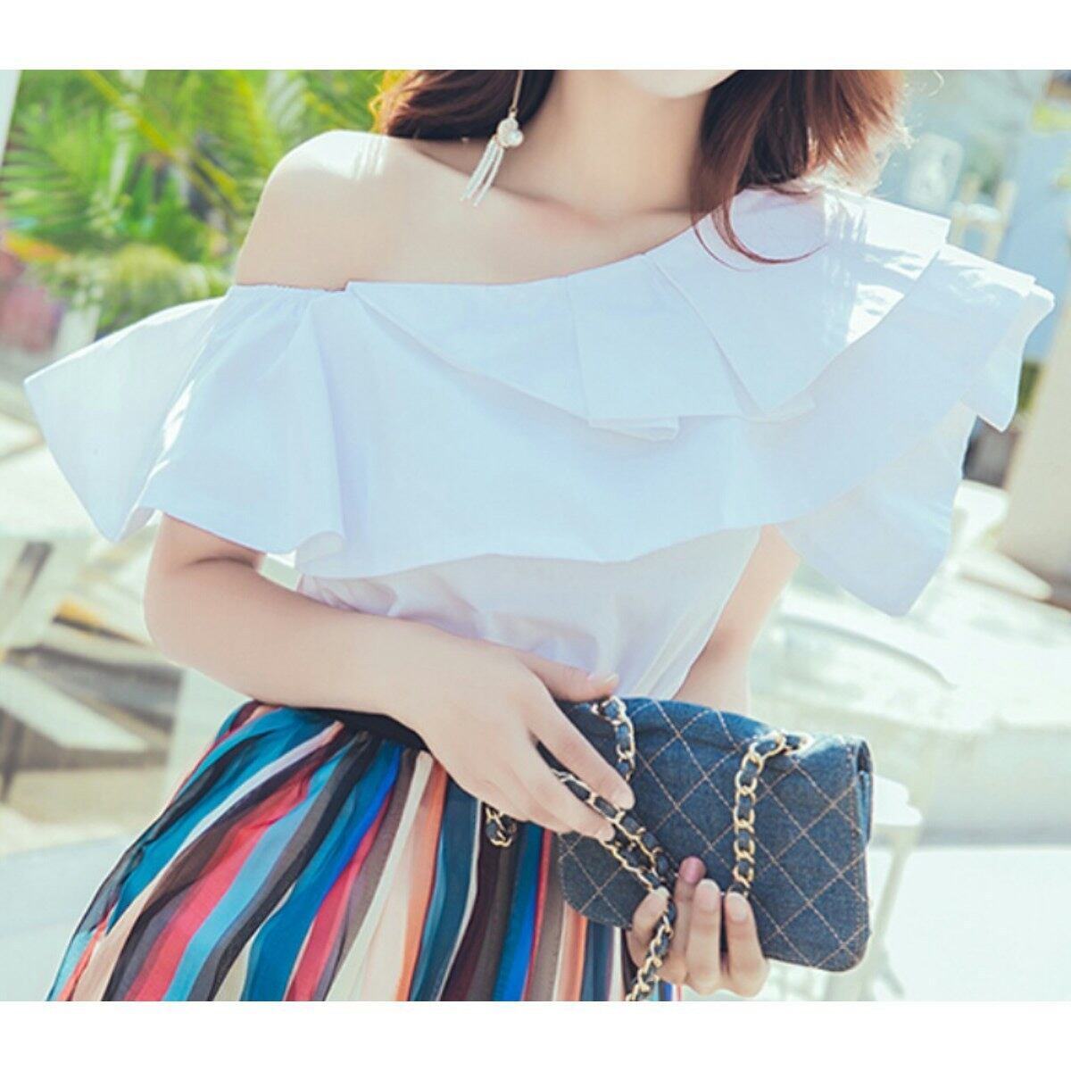 肩ライン綺麗/清潔感ある白色ワンショルダーティアードトップス