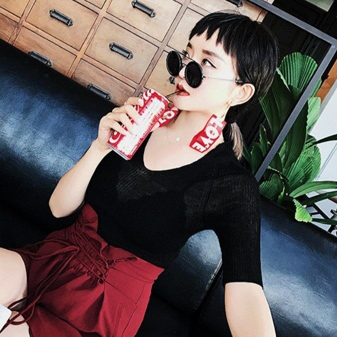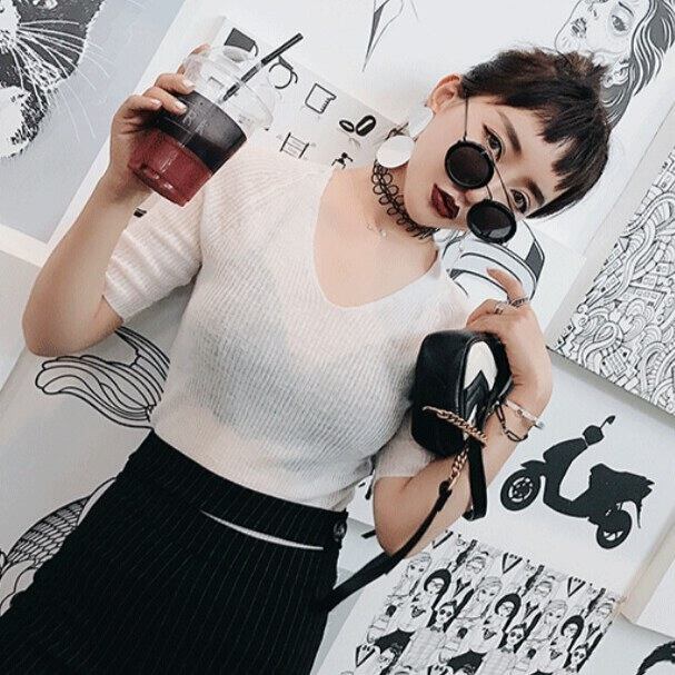 スケ感を楽しみたいシンプルな薄手ニットタイトトップス白/黒