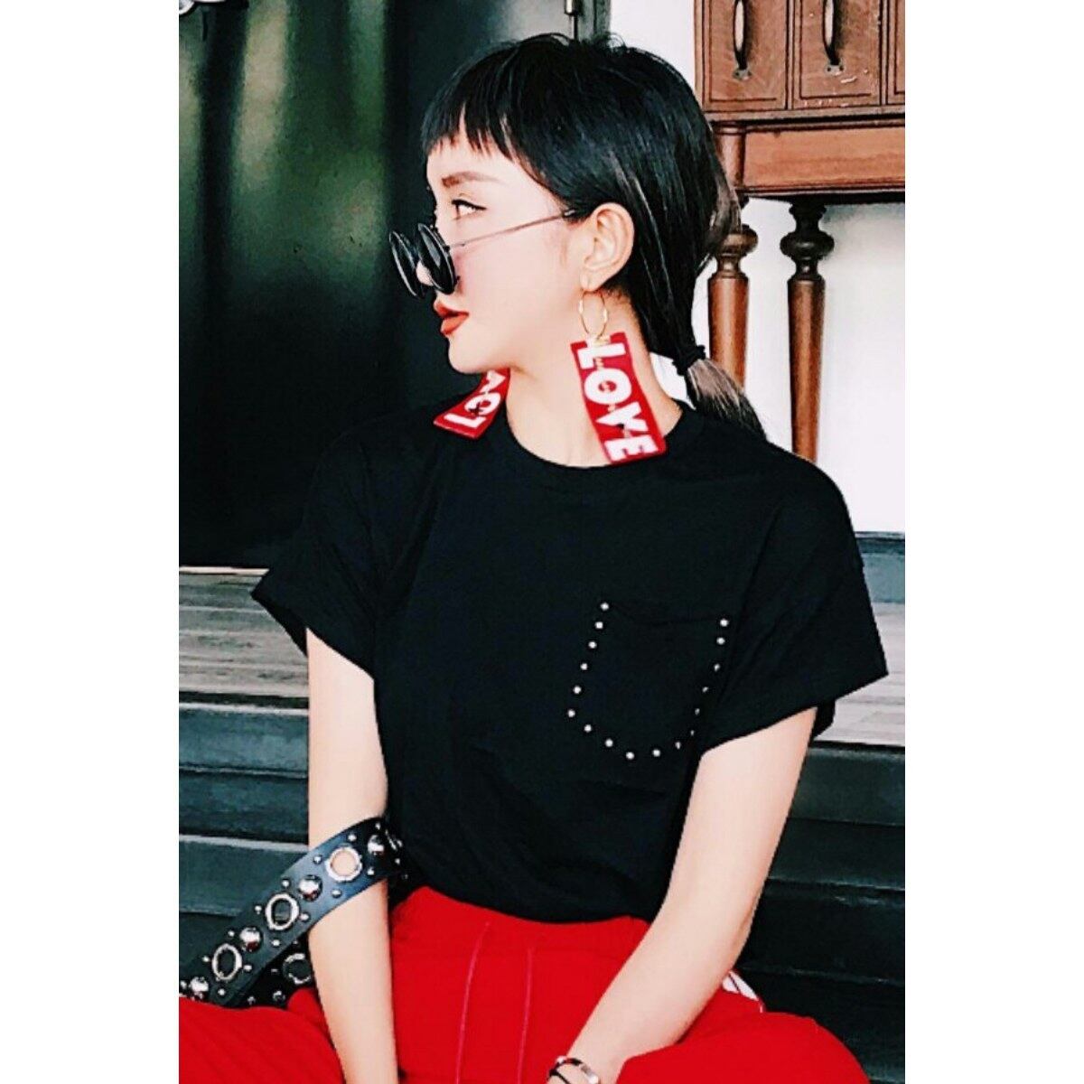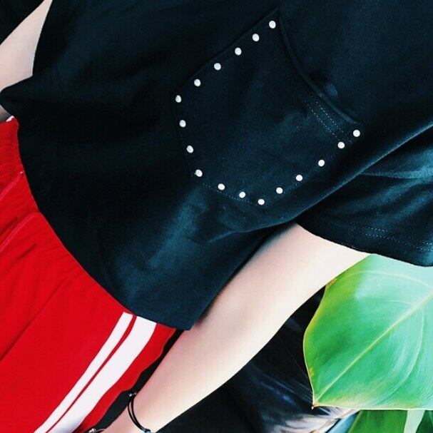 ポケットがポイントのクルーネックナチュラルなTシャツ黒/白