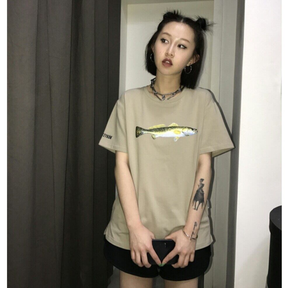 リアルなお魚模様がユニーク/カジュアルクルーネックTシャツ