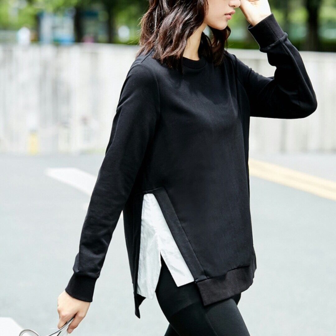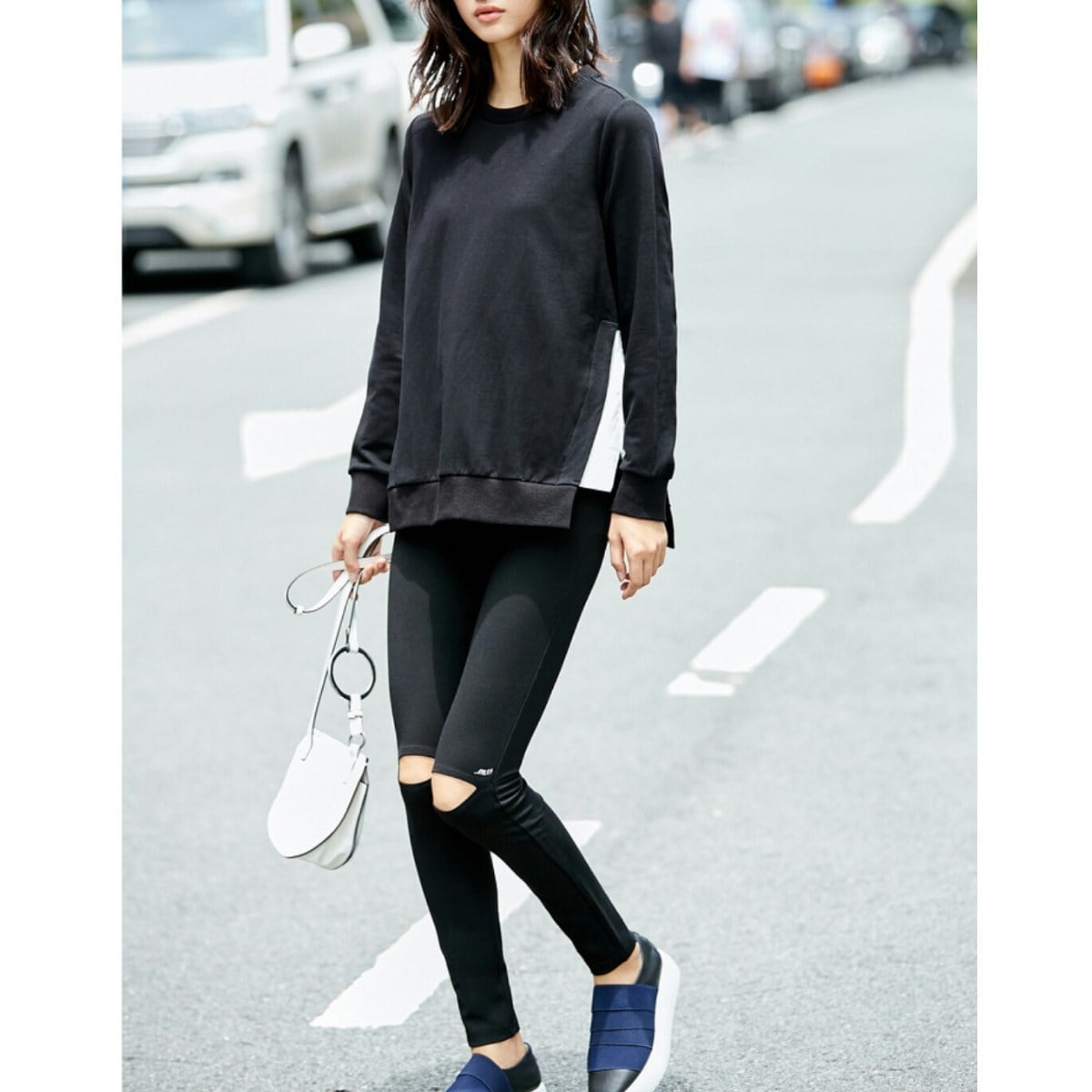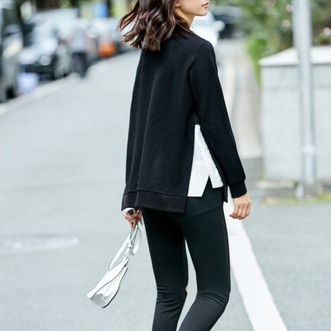 おしゃれなお散歩コーデにモノトーンバイカラースウェット