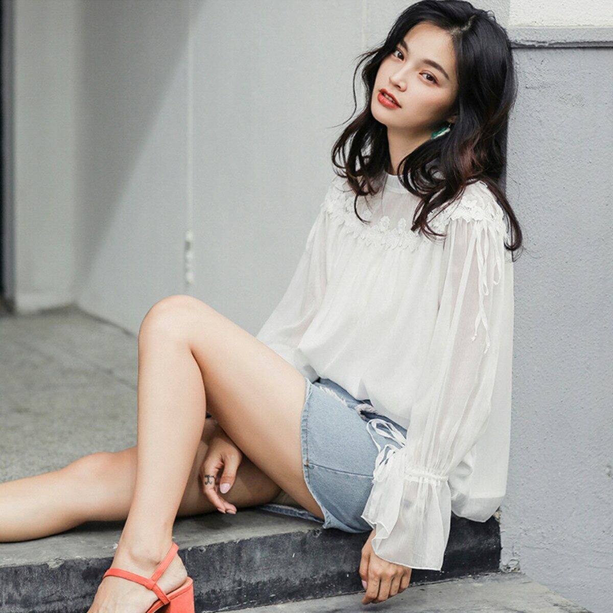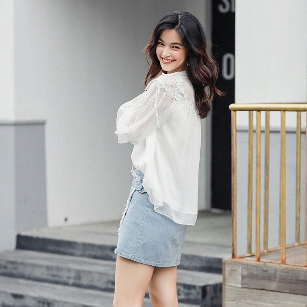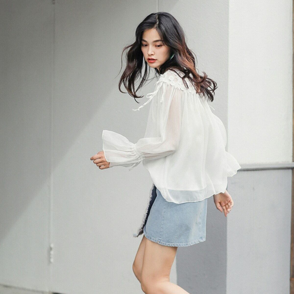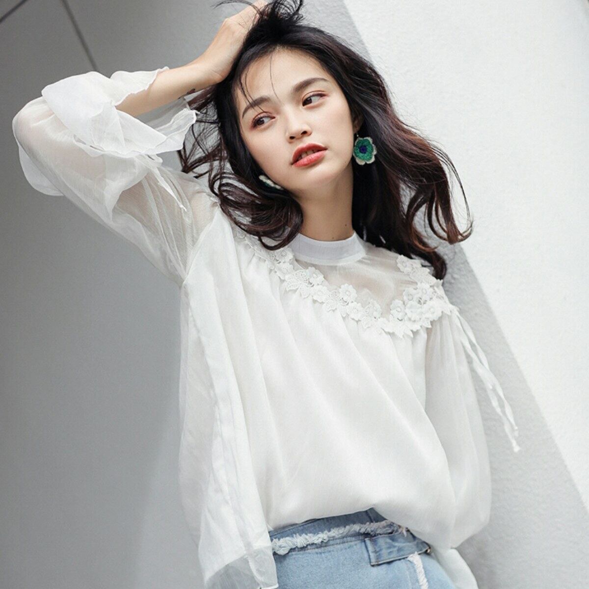 ヌケ感を女性らしく取り入れたレトロ花レース白トップス