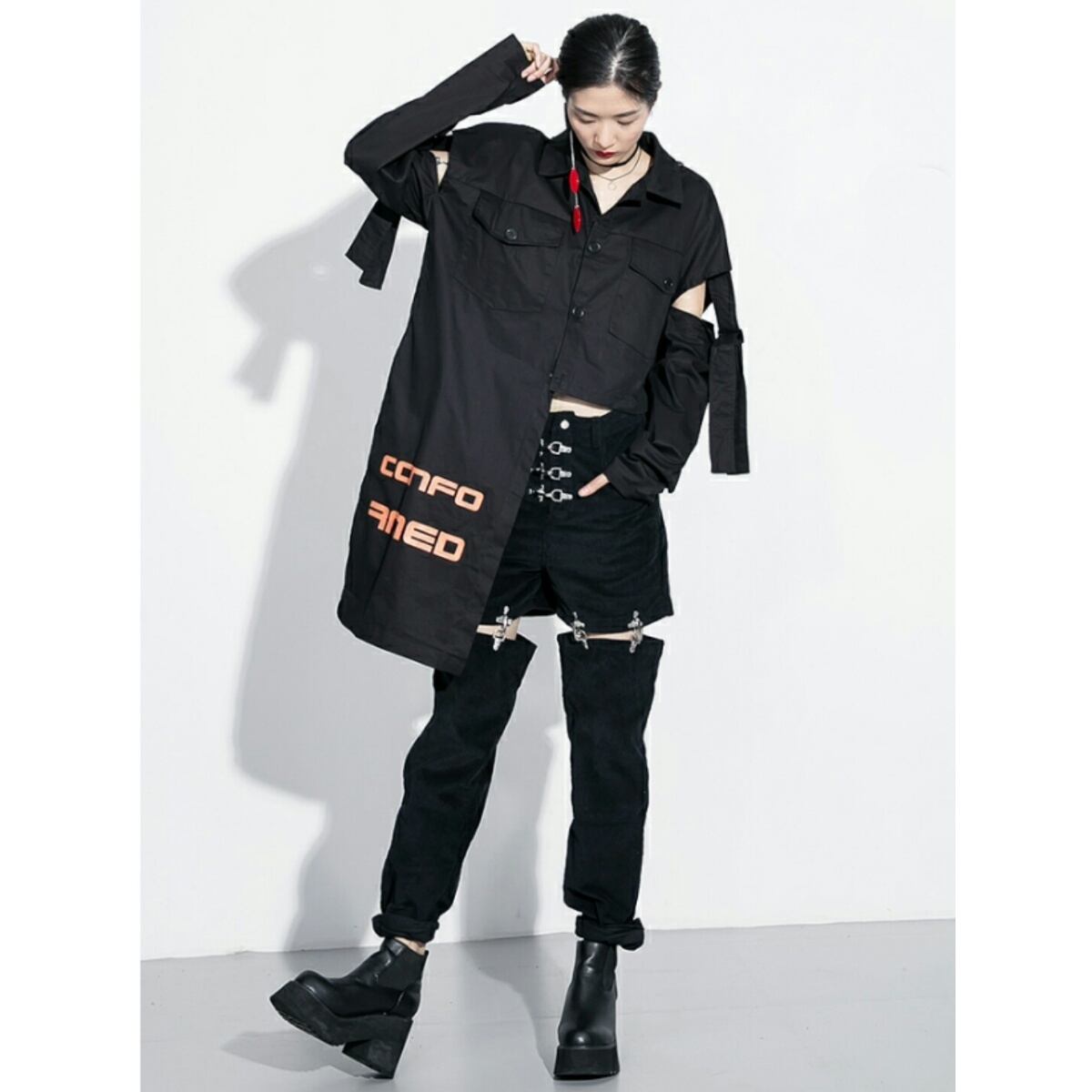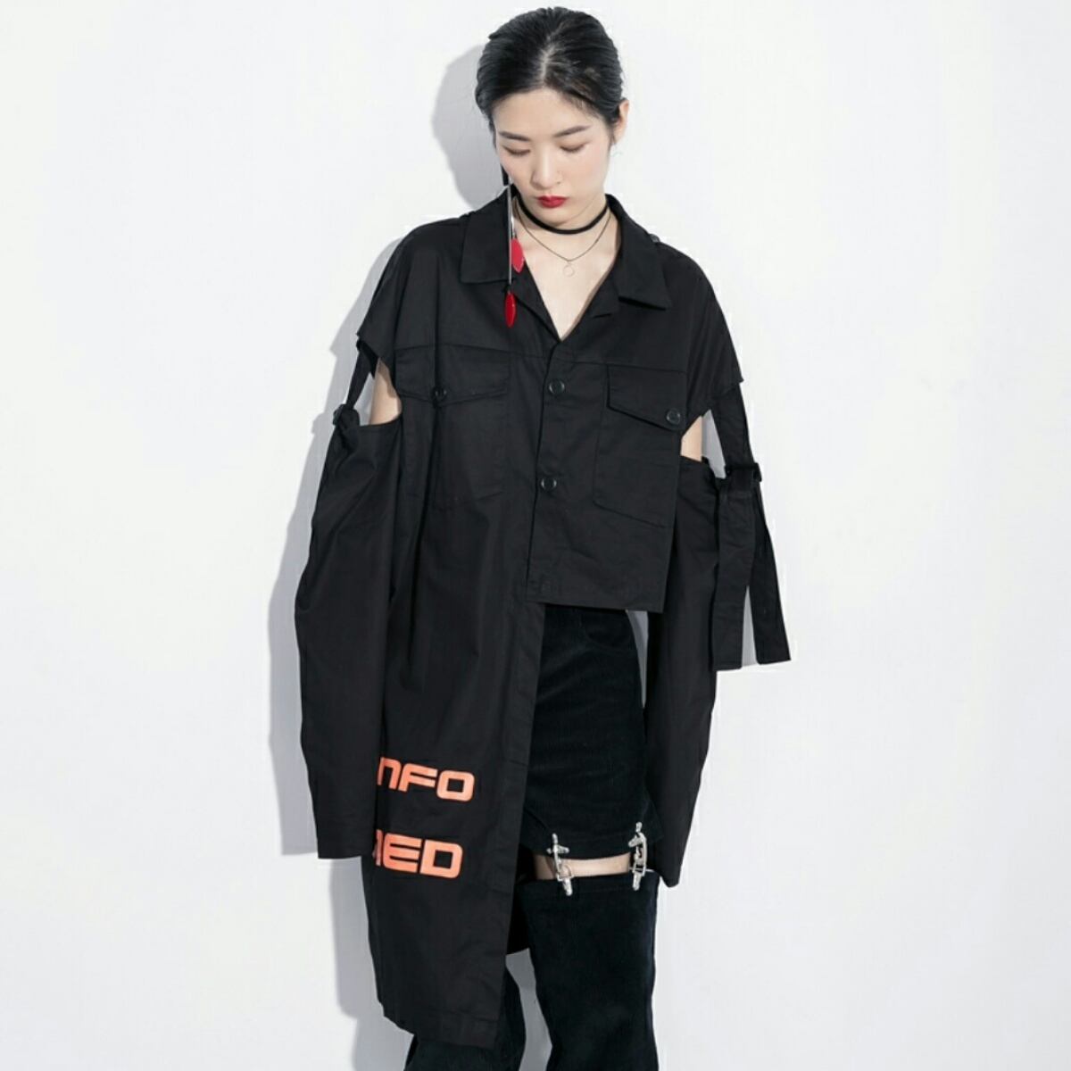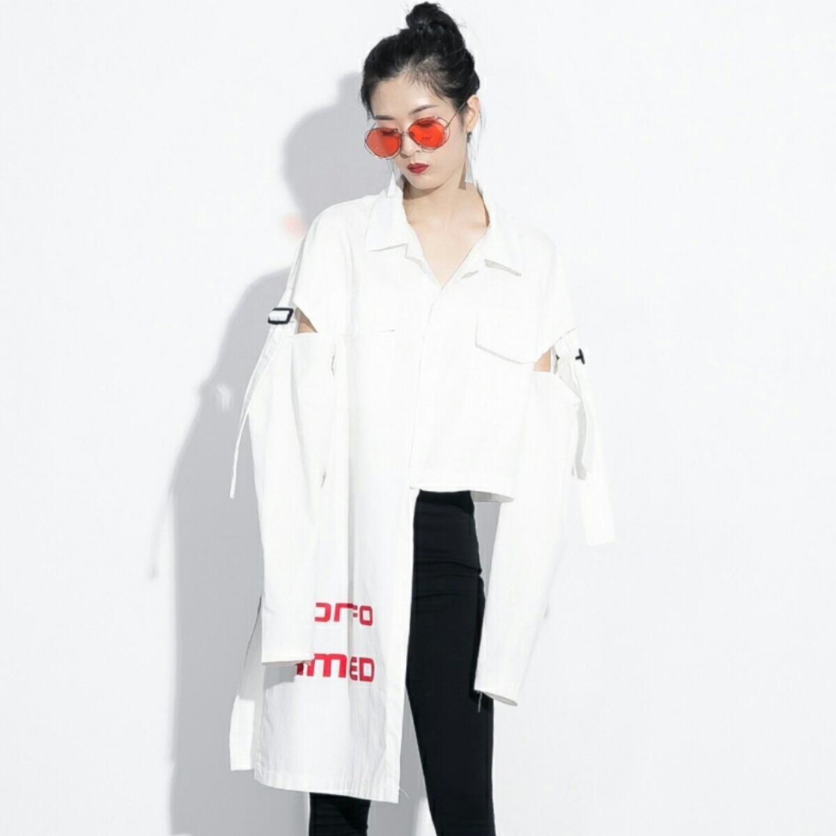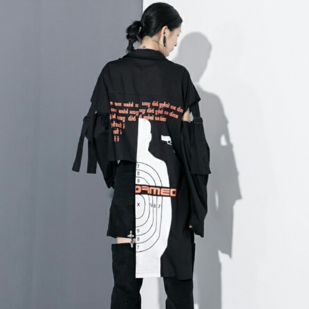 前後ギャップバックスタイルがおしゃれ斬新カットシャツ黒白