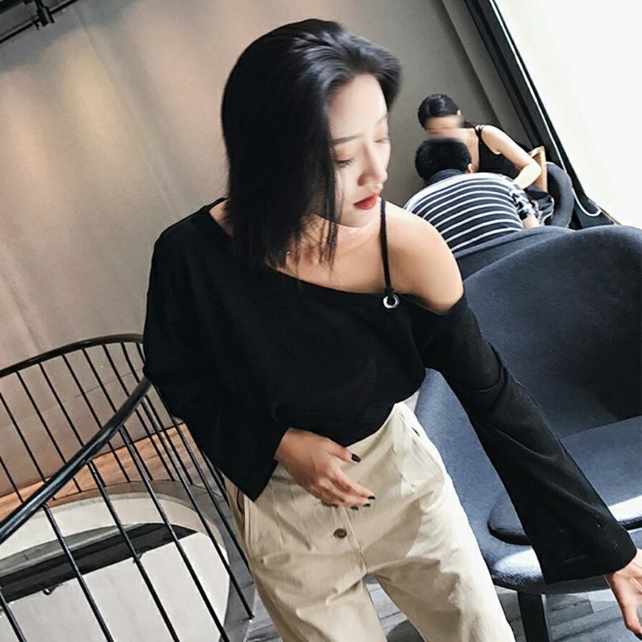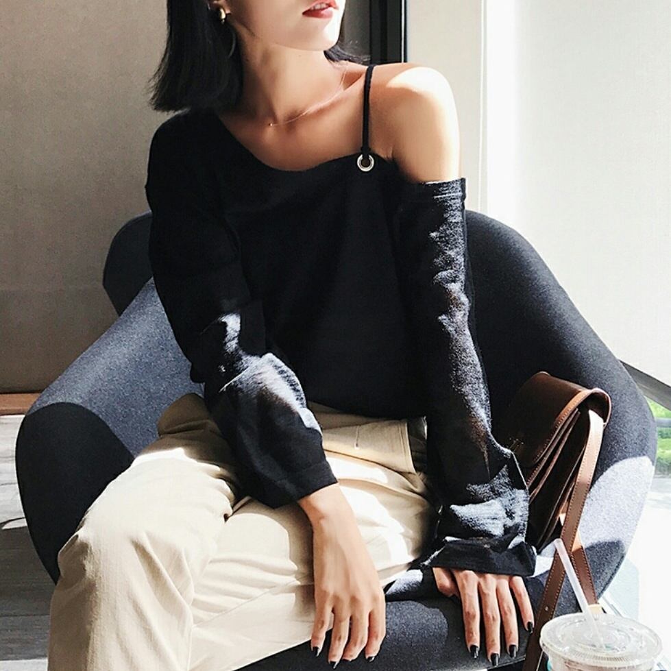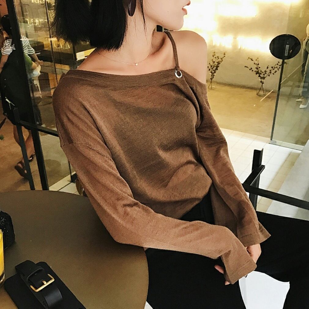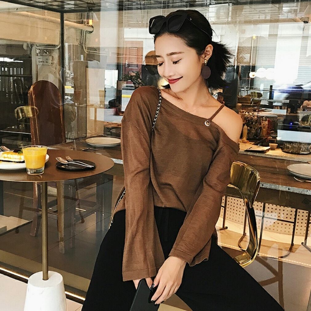 アシンメトリーカラー/インナーで楽しみたい薄手ニットトップス