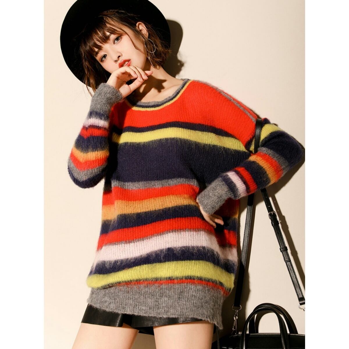 POPなマルチカラーボーダー/オーバーサイズニットトップス