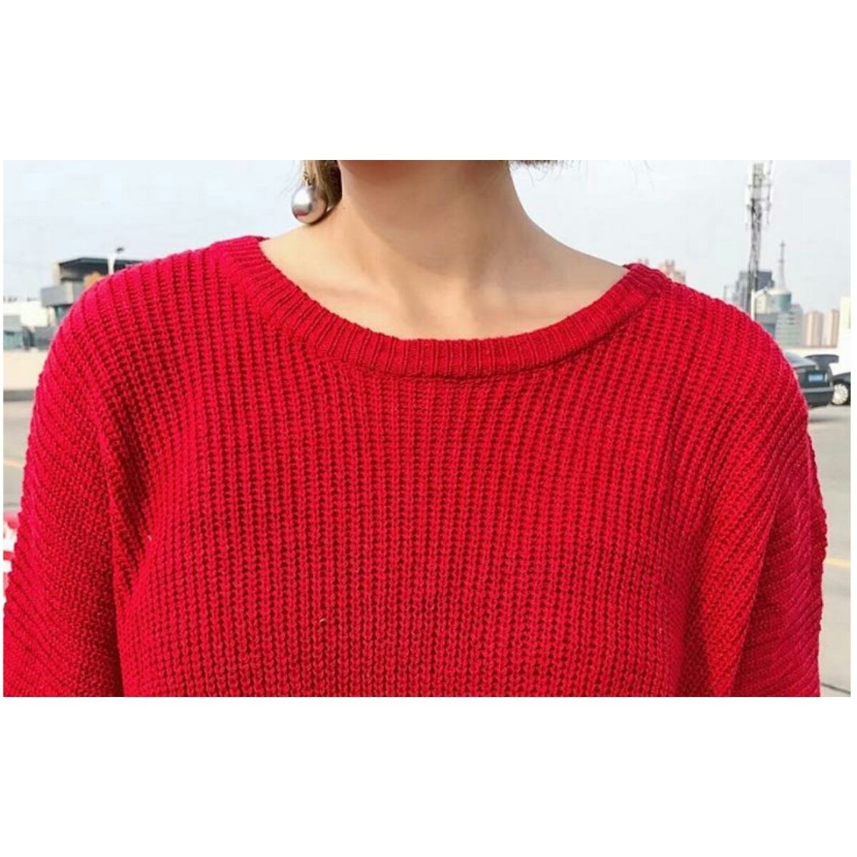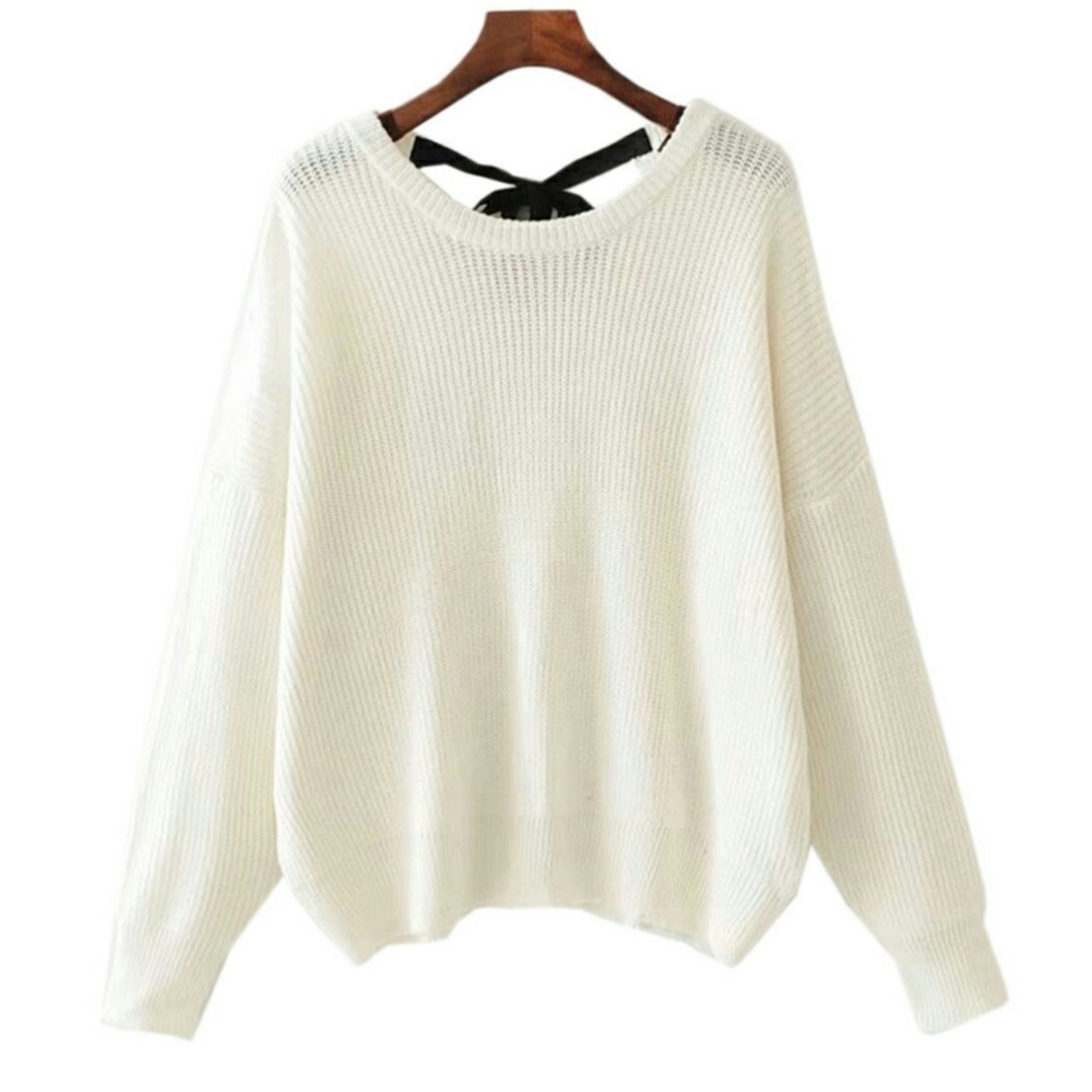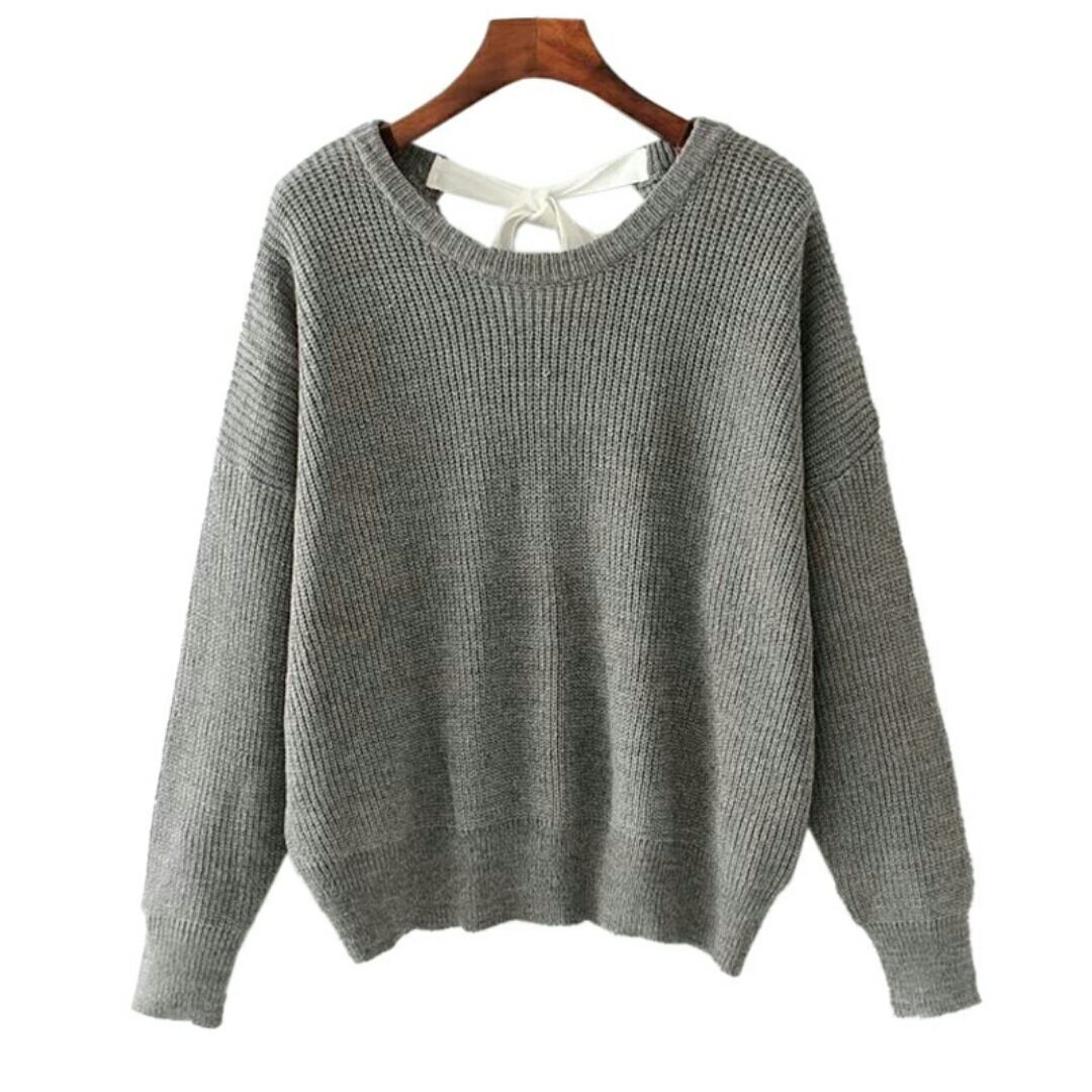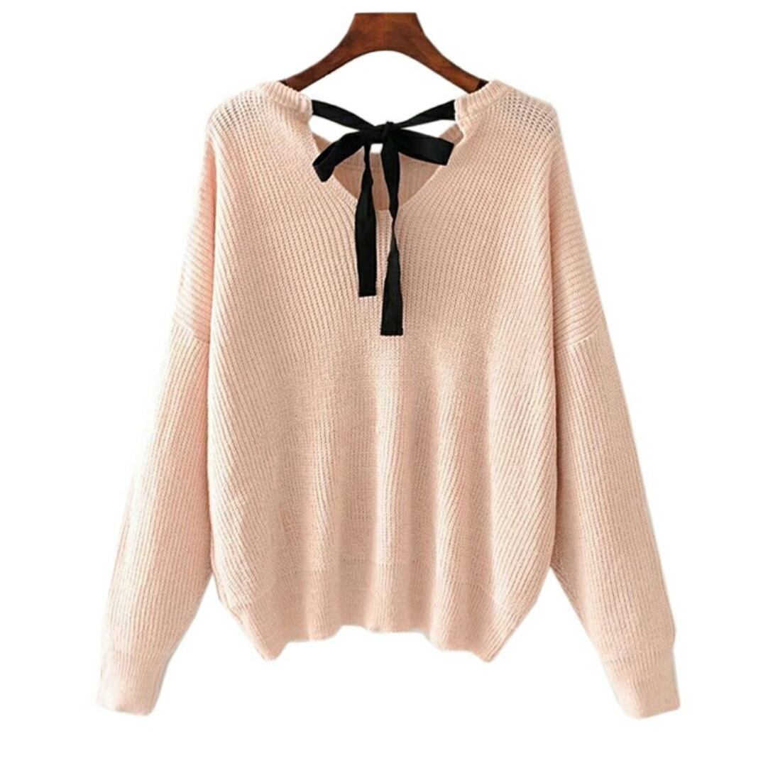 抜け感を添えた後ろスタイル紐リボンオーバーサイズニットトップ