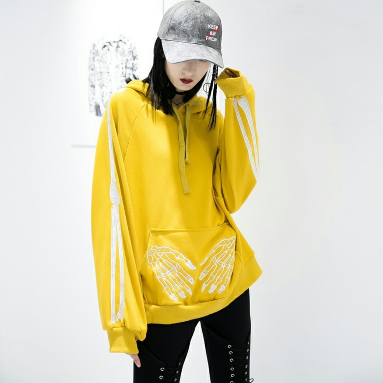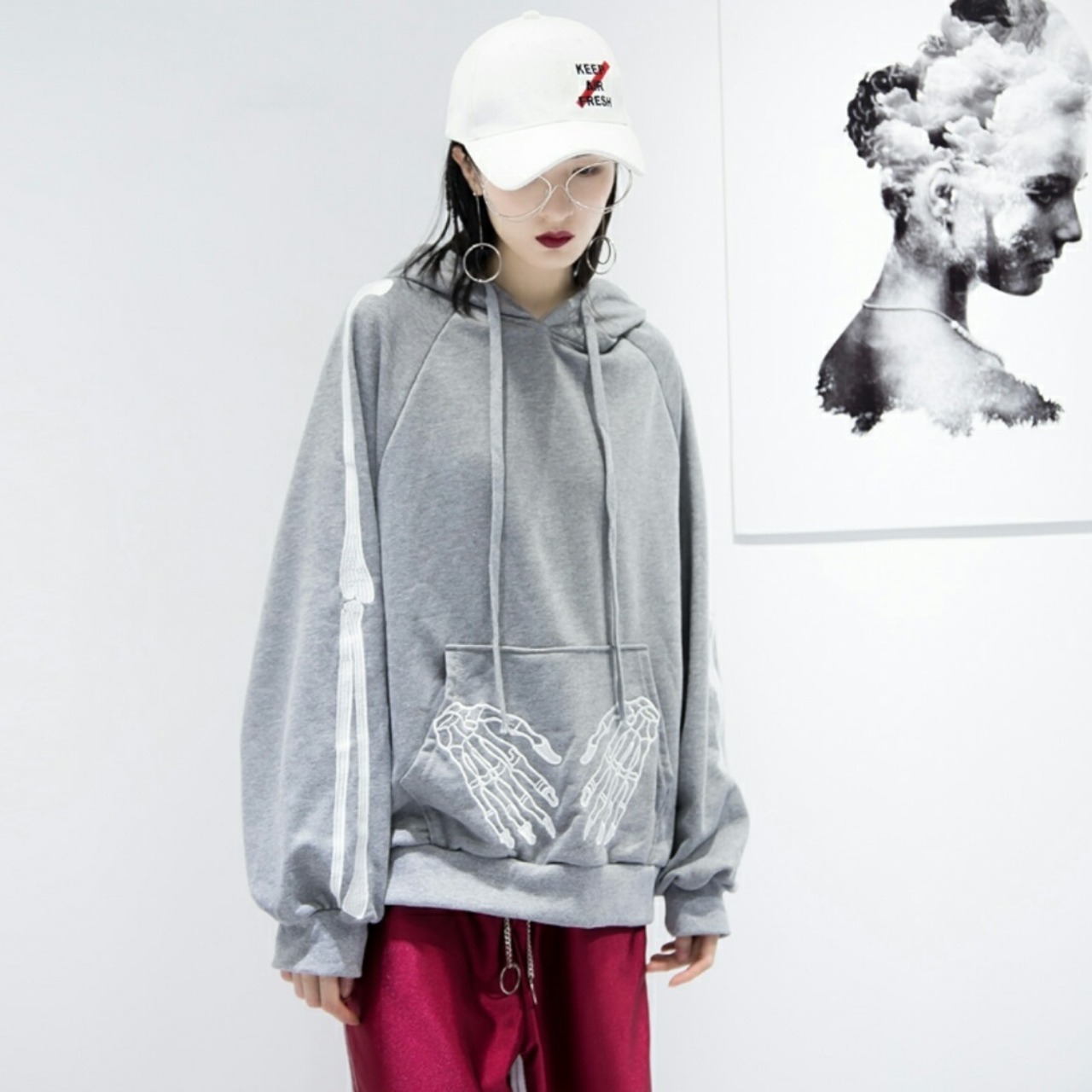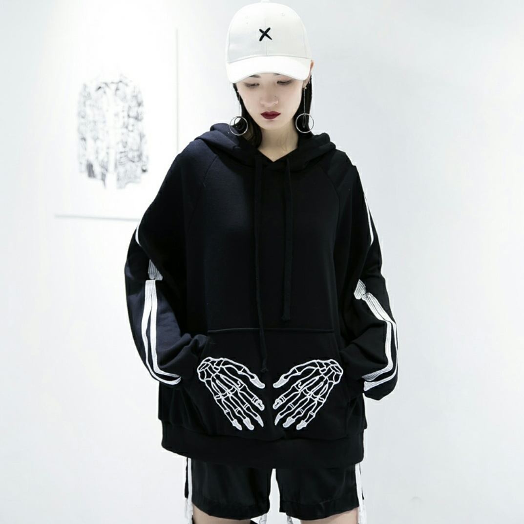 ユニセックス大きいサイズユニーク骸骨模様モチーフのパーカー