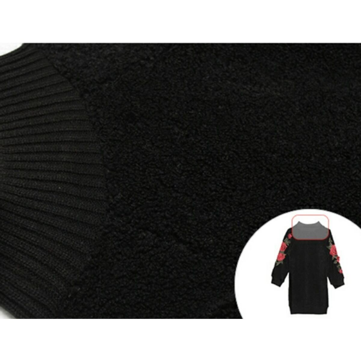 袖ボリューム薔薇模様が特徴的なニットワンピース黒/白