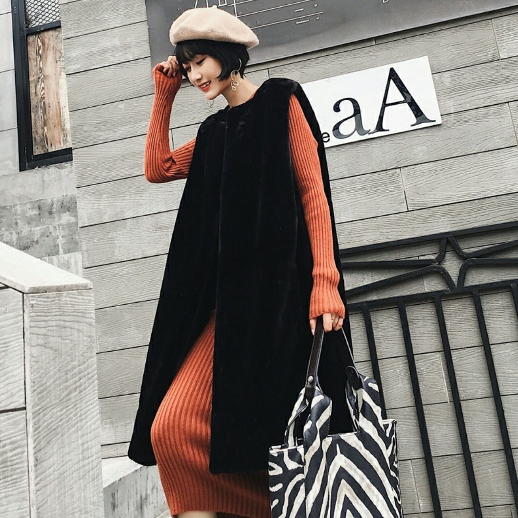 シンプルコーデも存在感を発揮トリミングフェイクファーベスト